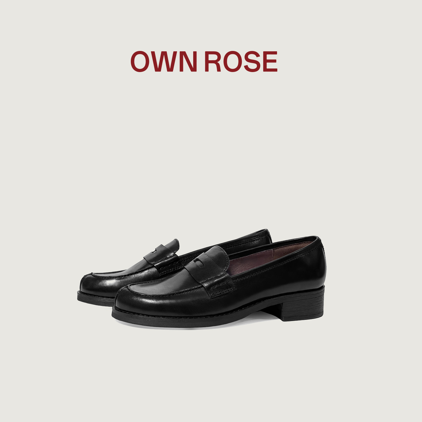OWN ROSE新款真皮便士乐福鞋女士秋冬季不累脚一脚蹬平底小皮鞋
