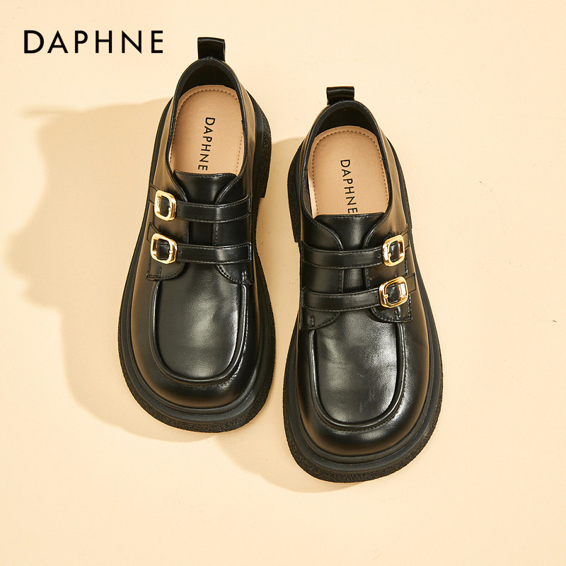 达芙妮乐福鞋女2025新款春秋软底百搭英伦风复古双排扣平底小皮鞋