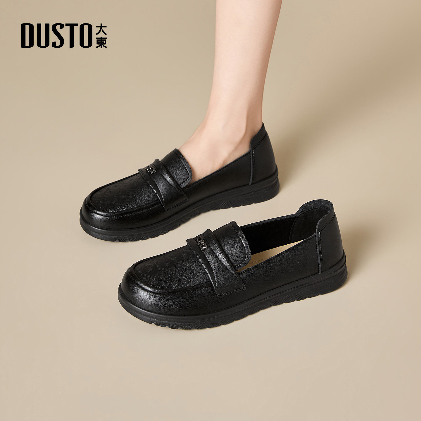 大东官方黑色乐福鞋女2026新款春季软底妈妈鞋女士单鞋平底小皮鞋