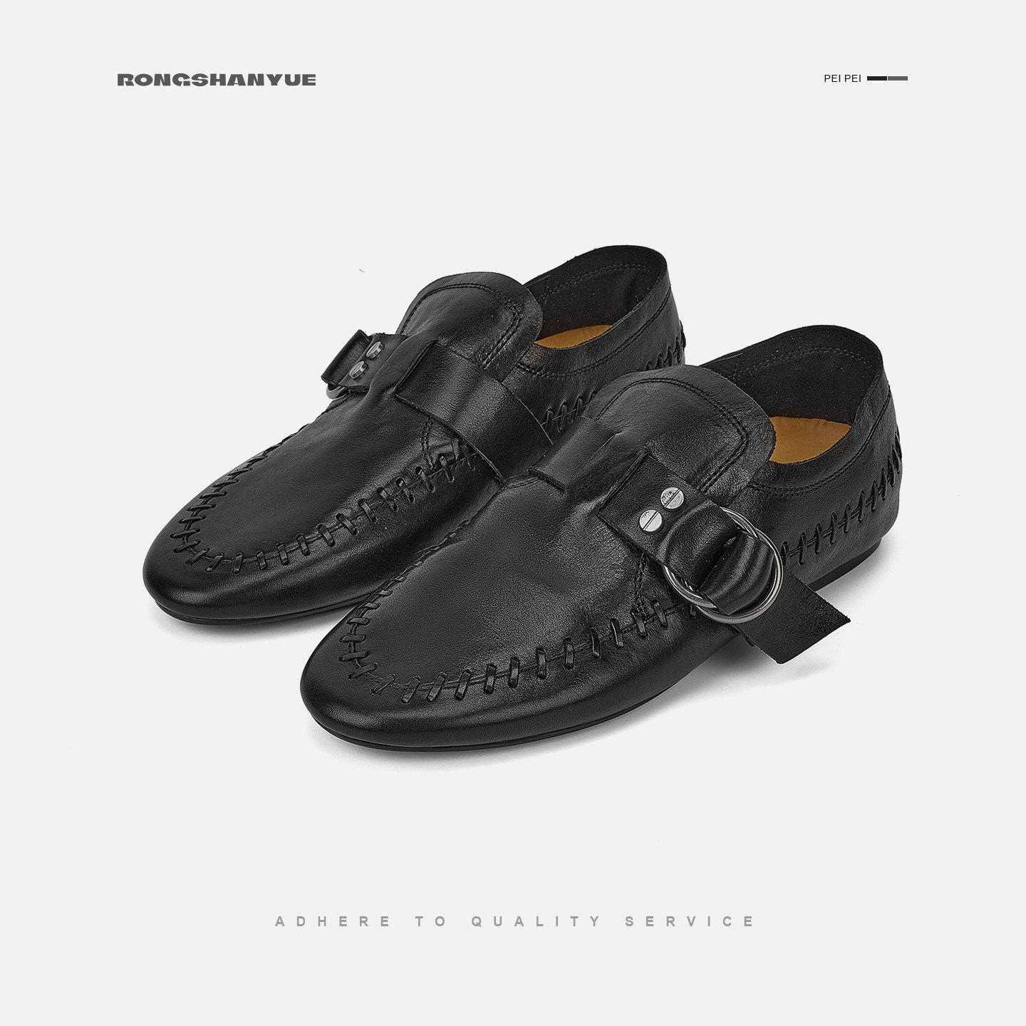 Rongshanyue松弛感水洗牛皮一脚蹬乐福鞋女老钱风平底小皮鞋B1525