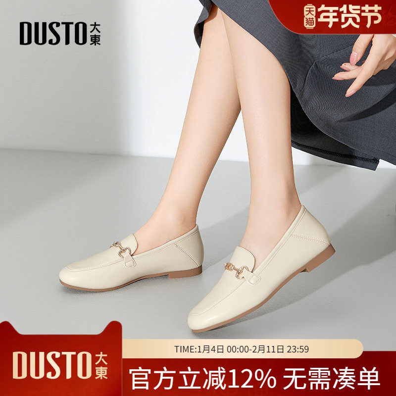 大东女鞋2025秋季新款乐福鞋通勤平底小皮鞋简约舒适工作鞋女单鞋