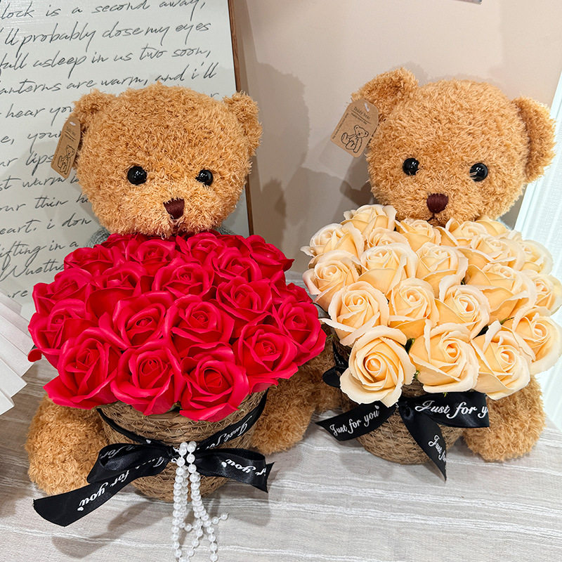 送女生儿童生日情人节礼物小熊礼盒泰迪熊表白花束毛绒玩偶永生花