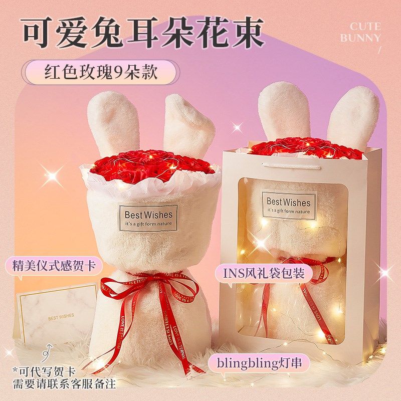 新款日七夕情人节女生礼物玫仿瑰花束生婚表白礼物送女求友闺蜜真