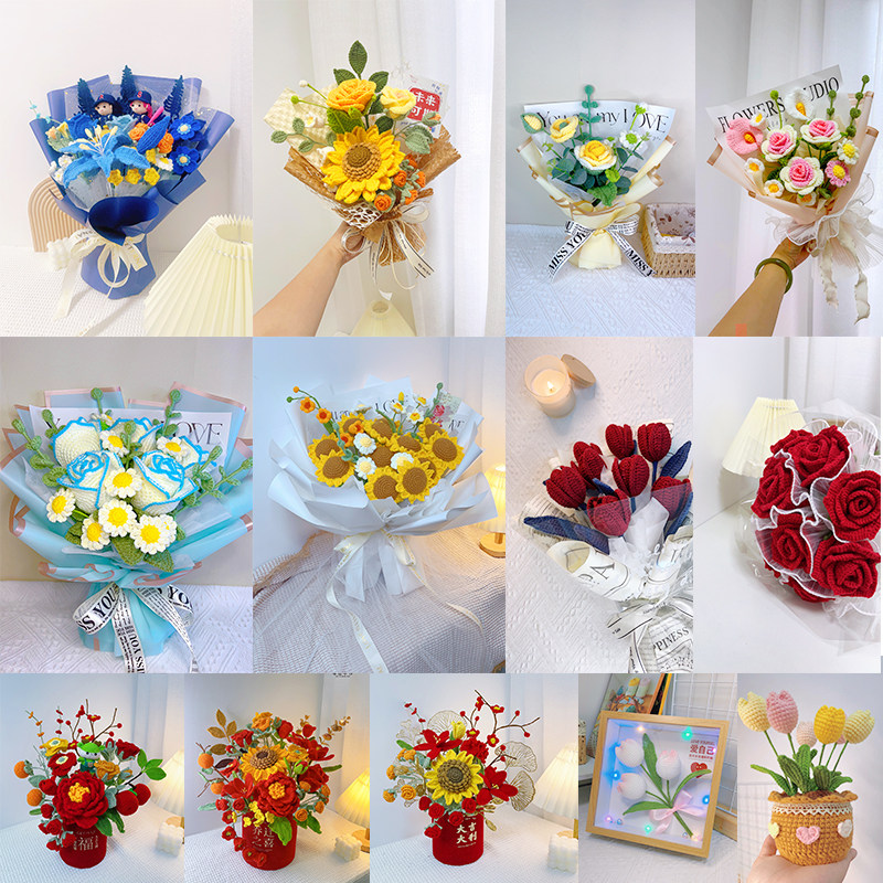 玫瑰向日葵定制花束毛线手工编织成品表白情人节礼物送女生日闺蜜