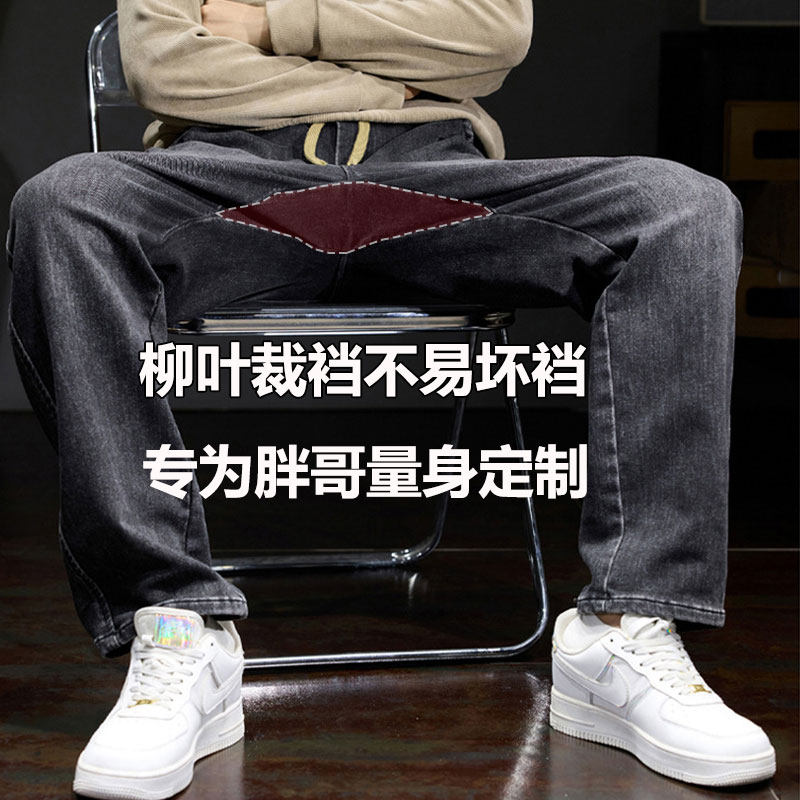 柳叶裆牛仔裤男胖子厚款男款加肥加大宽松显瘦松紧腰直筒微锥长裤
