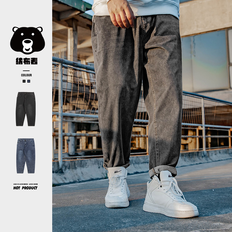 豪霆 水洗锥形宽松牛仔裤男胖子加肥加大码萝卜裤基础休闲哈伦裤