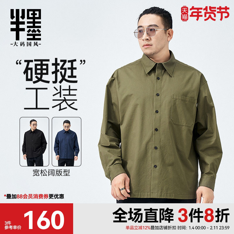 半墨大码男装工装衬衫男长袖宽松秋季新款简约加肥加大衬衣男胖子