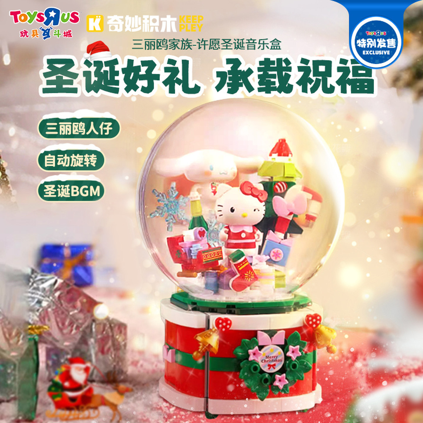圣诞树八音盒旋转积木6到12岁儿童益智拼装玩具男女孩圣诞节礼物