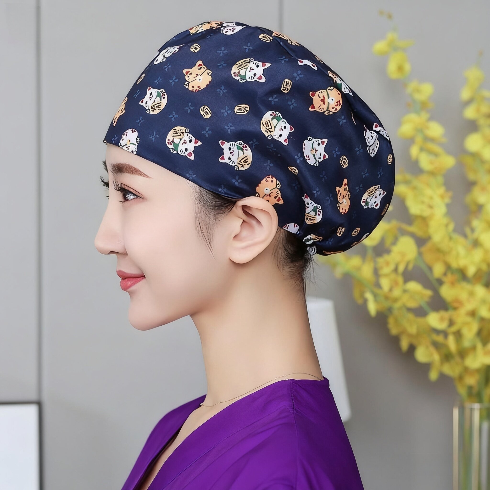 男女印花医生帽纯棉透气吸汗口腔牙科手术帽宠物医院美容院护士帽