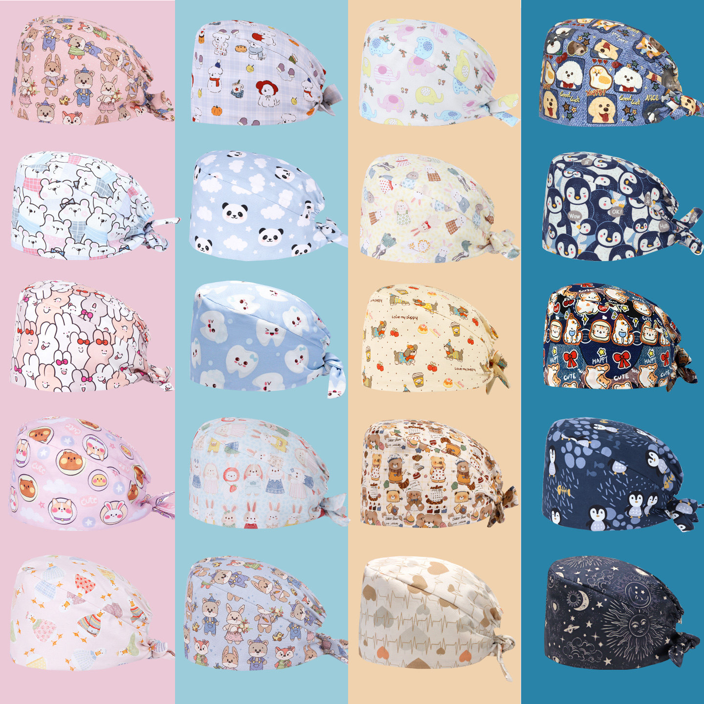 手术帽男女护士帽牙科口腔医生帽印花手术室帽子化疗耐氯漂调节扣