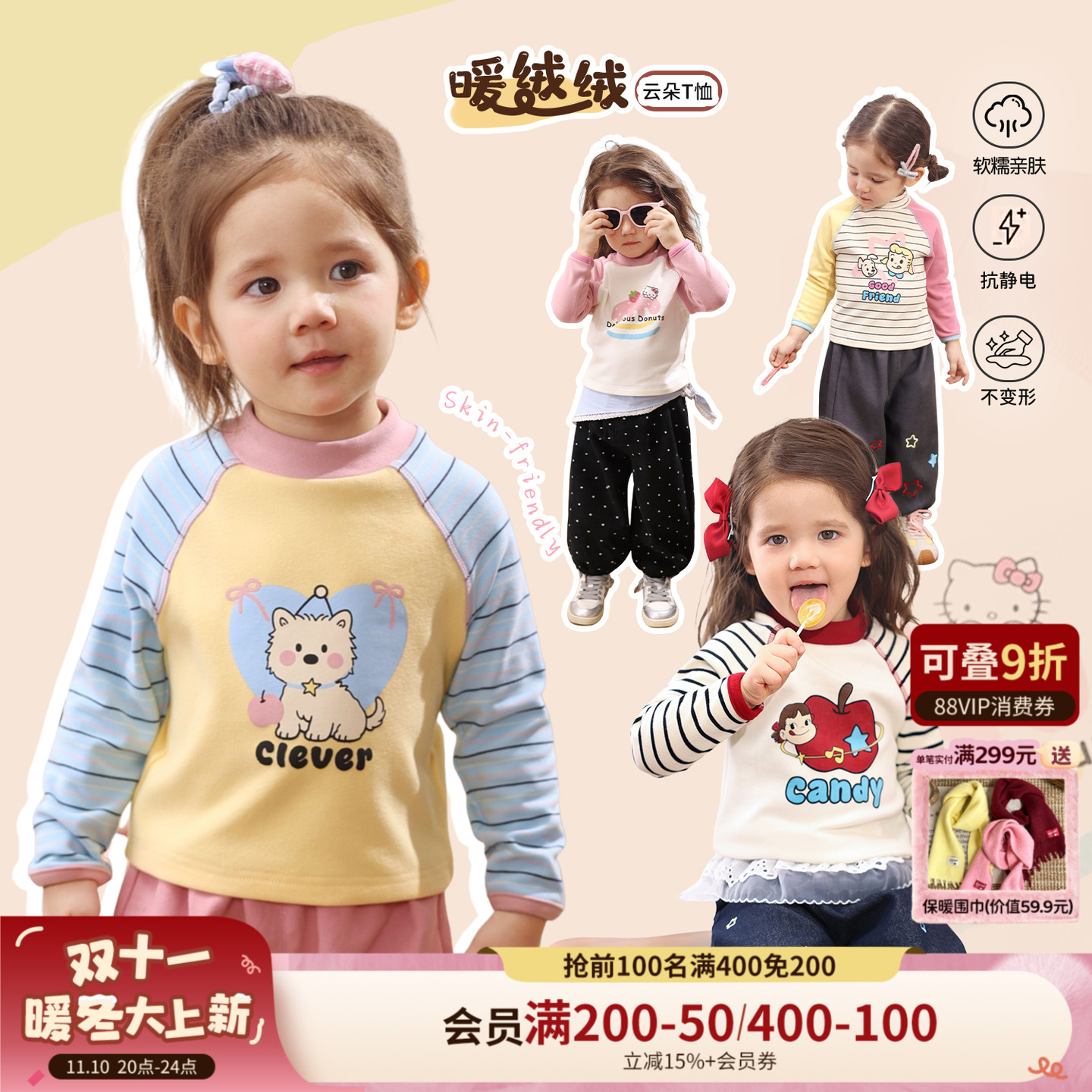 米米哈罗女童打底衫秋冬2025新款儿童半高领德绒上衣女孩长袖T恤
