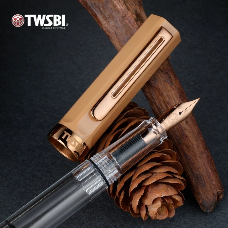 【新品】官方旗舰店刻字twsbi三文堂eco奶油黄玫金钢笔女生复古练字笔透明学生书法笔男士商务中国风礼物送礼