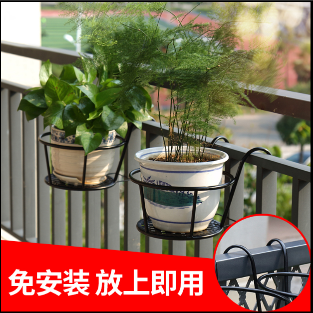 热销铁艺栏杆花架置物架阳台花盆架悬挂护栏多肉花盆挂架窗台沿花