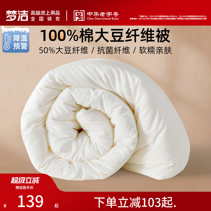 水星家纺A类大豆纤维被四季通用被芯保暖春秋被子棉被单双人被芯