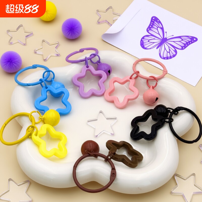 ins彩色亚克力镂空五角星钥匙扣挂件烤漆铃铛配件耳机套包包装饰