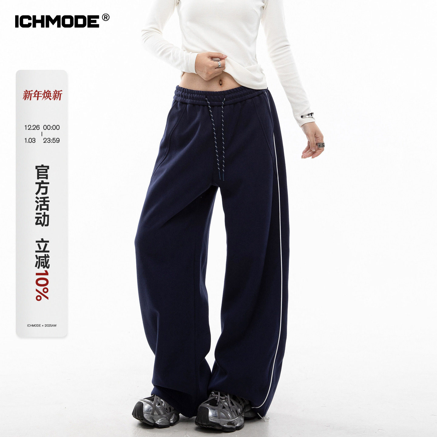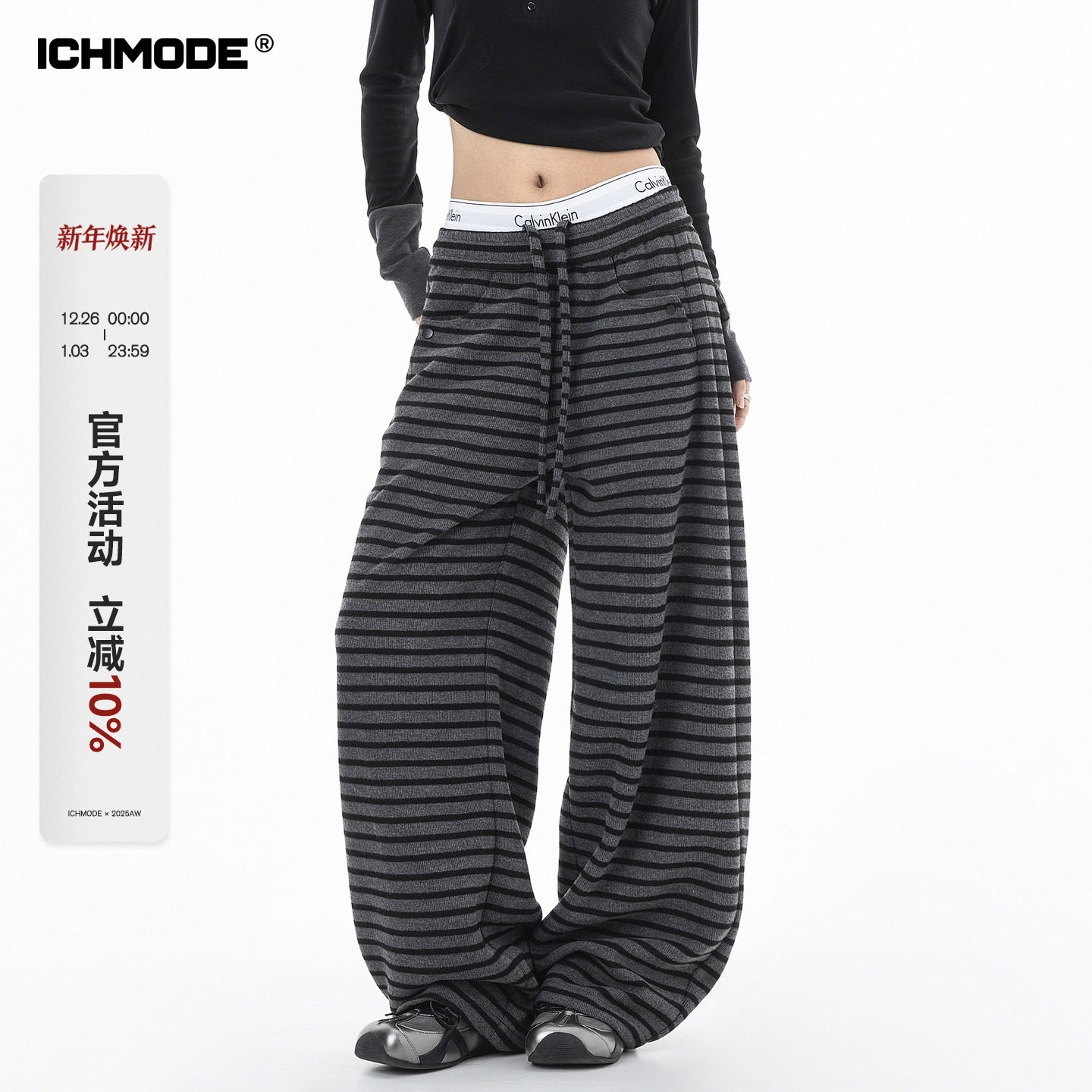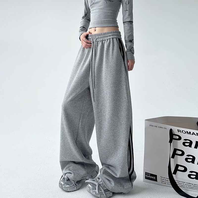 ICH MODE 美式复古条纹休闲裤女新款高腰直筒裤百搭运动裤阔腿裤