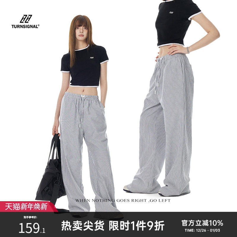 TurnSignal潮牌条纹休闲裤女春秋薄款2025新款直筒宽松运动阔腿裤