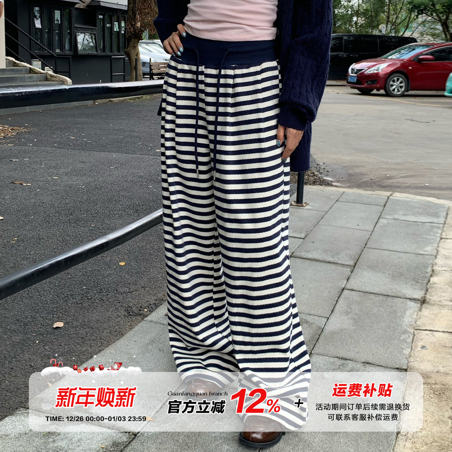 - 条纹阔腿裤