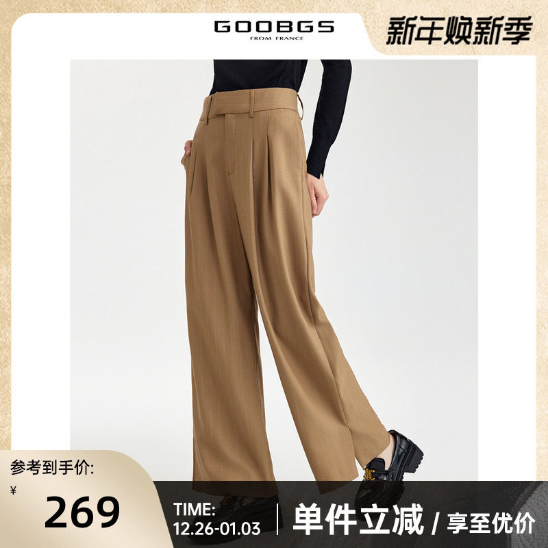 谷邦通勤条纹休闲裤女2025秋新款高腰显瘦阔腿裤简约垂感长裤子
