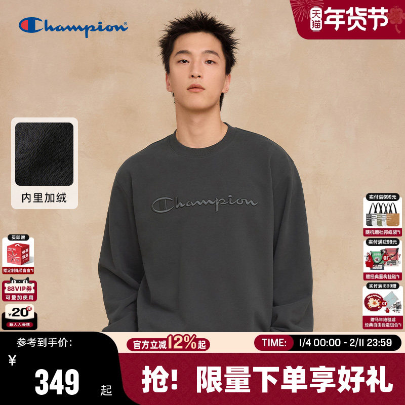 Champion冠军圆领卫衣男25冬季新款情侣加绒刺绣潮牌美式风女宽松