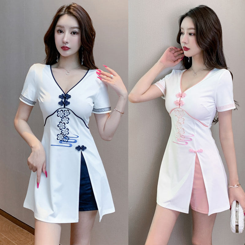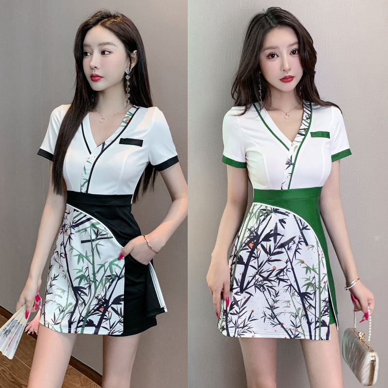 新款旗袍连衣裙性感夜场女装显瘦沐足工衣桑拿足浴技师服套装裙夏