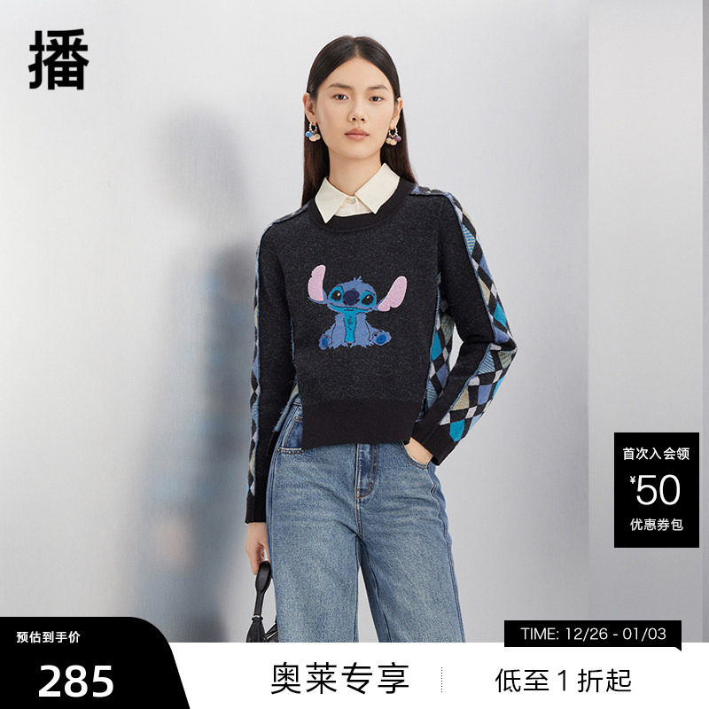 【播奥莱】播史迪奇系列针织衫女冬复古短款开叉毛衣BDQ4SD1258