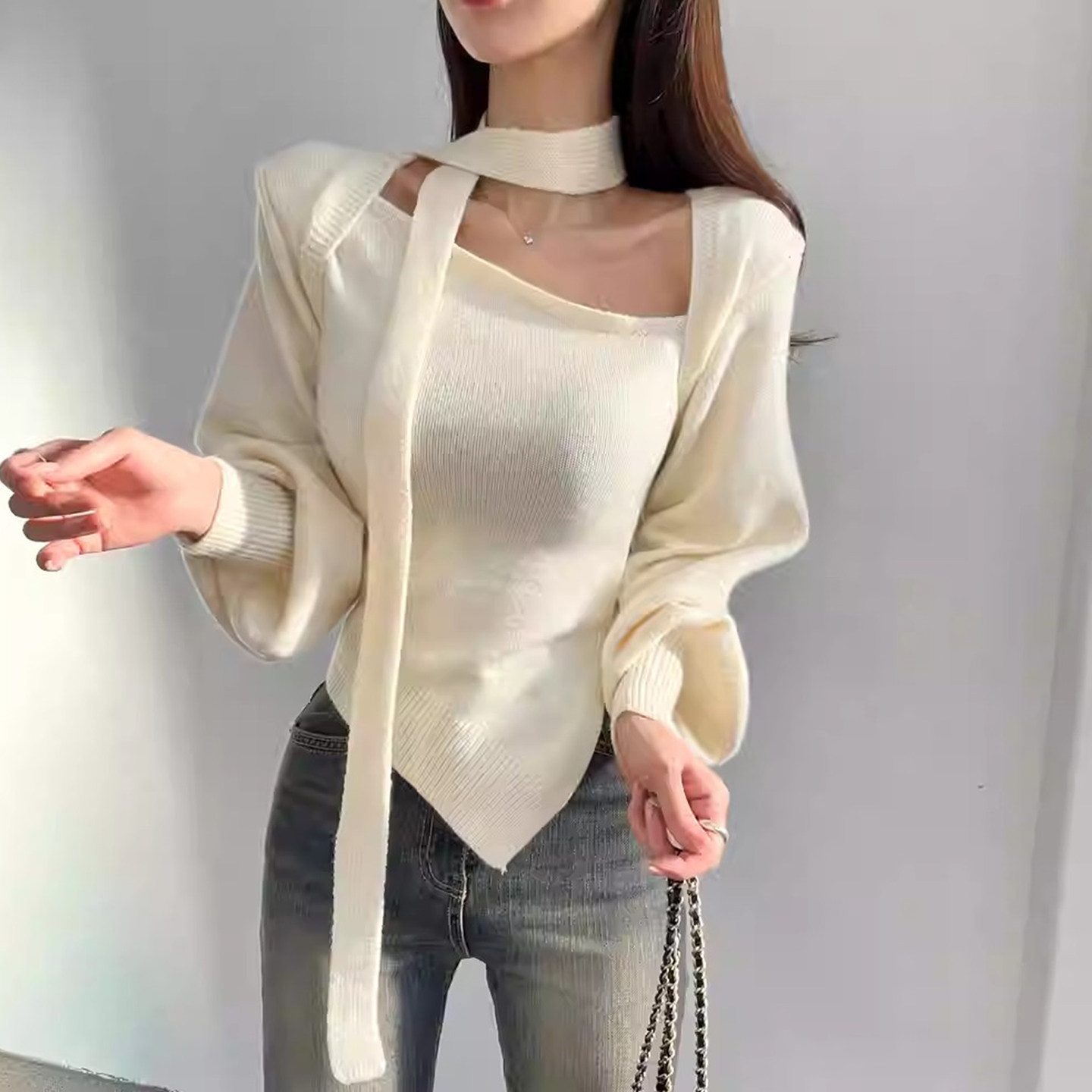 LXLILIUM【温柔拿捏】两色开叉长袖针织打底毛衣女秋冬内搭短款
