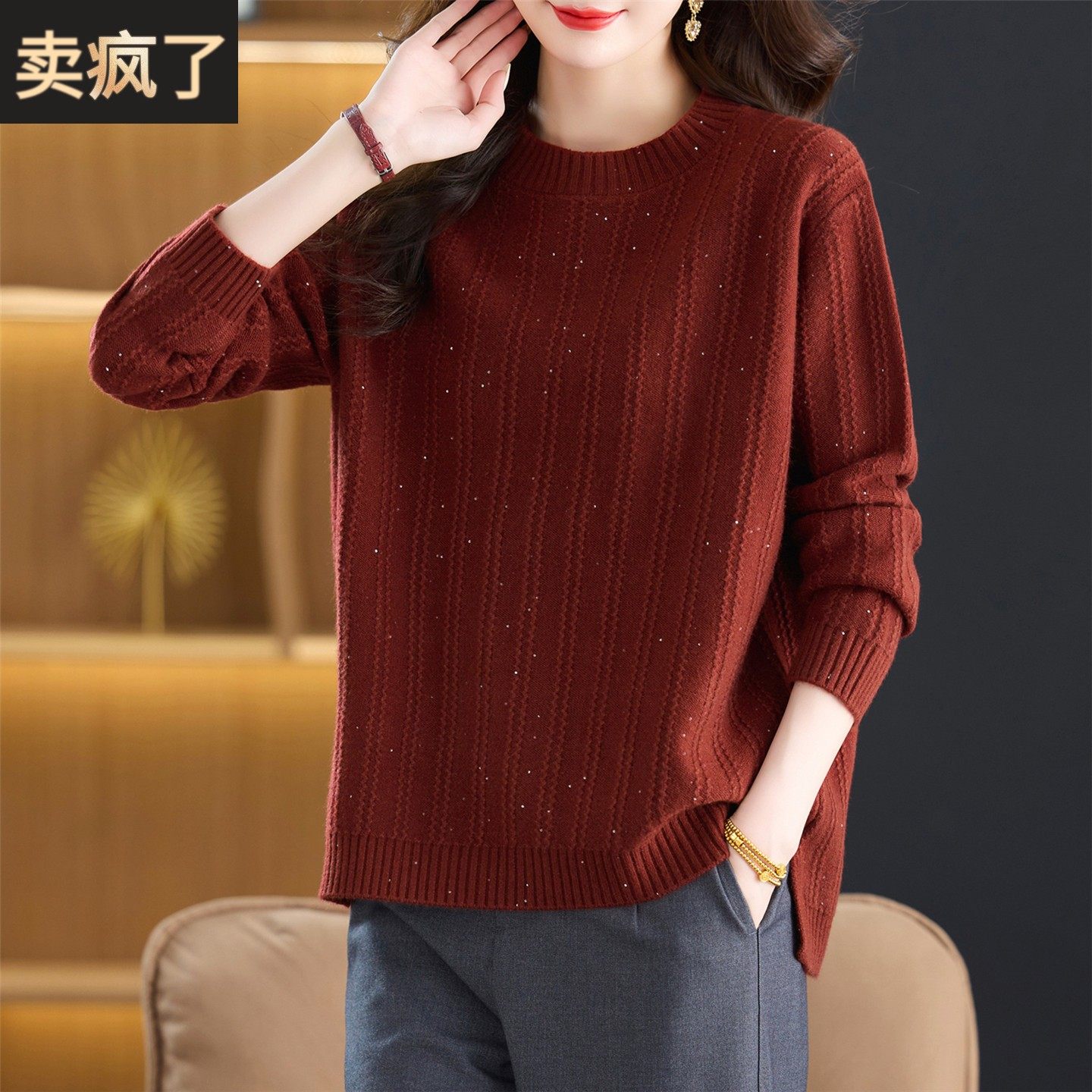 高级感圆领毛衣女秋冬新款慵懒风开叉宽松短款针织打底衫外穿上衣