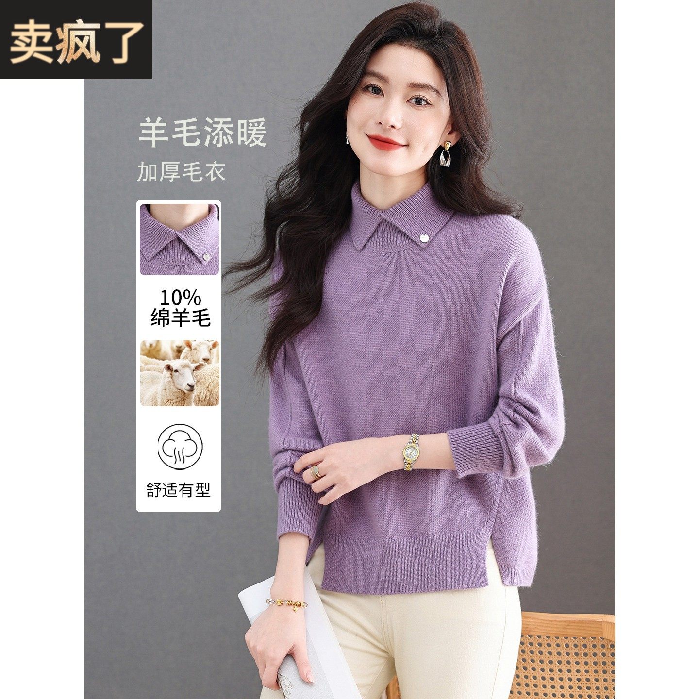 半高领紫色开叉毛衣女短款秋冬2025新款宽松加厚针织打底衫超好看