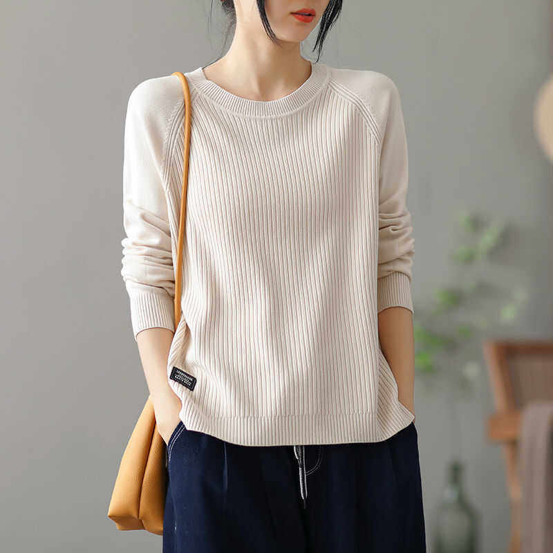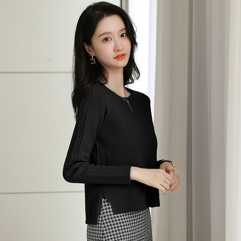 短款毛衣女春装2022年新款宽松外穿套头圆领开叉高腰打底针织衫女