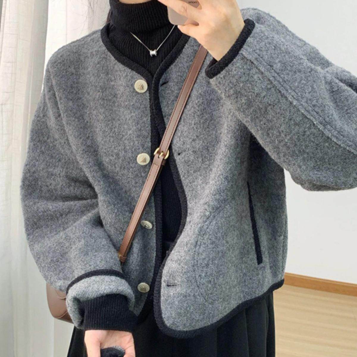 慕兔法式圆领小香风短款外套女2025秋季新款宽松粗花呢小个子上衣