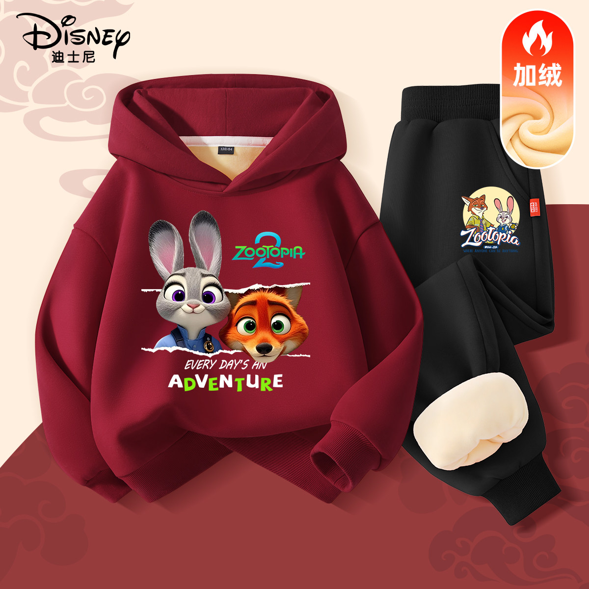 迪士尼童装疯狂动物城衣服儿童套装2025新款男童加绒卫衣女童冬装