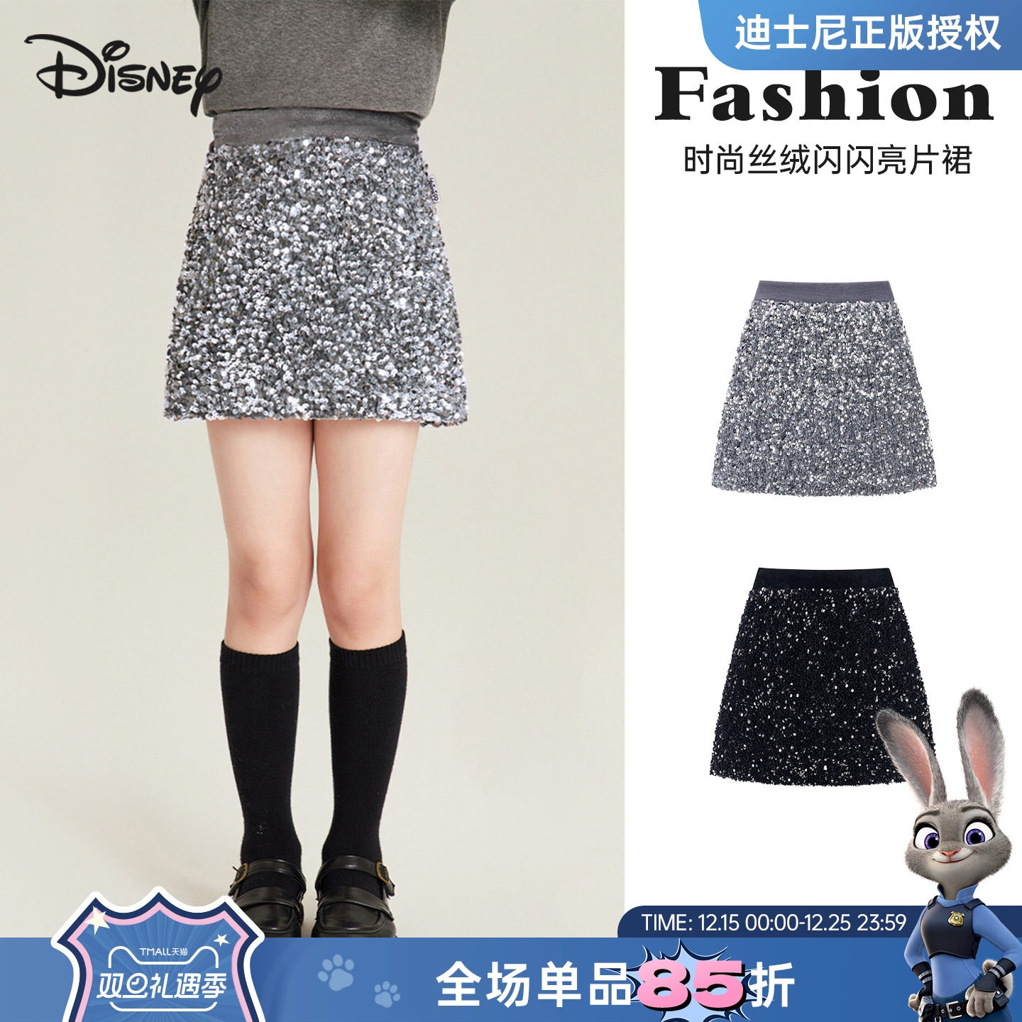 迪士尼童装女童亮片半身裙小女孩A字型裙子公主裙儿童洋气高腰裙