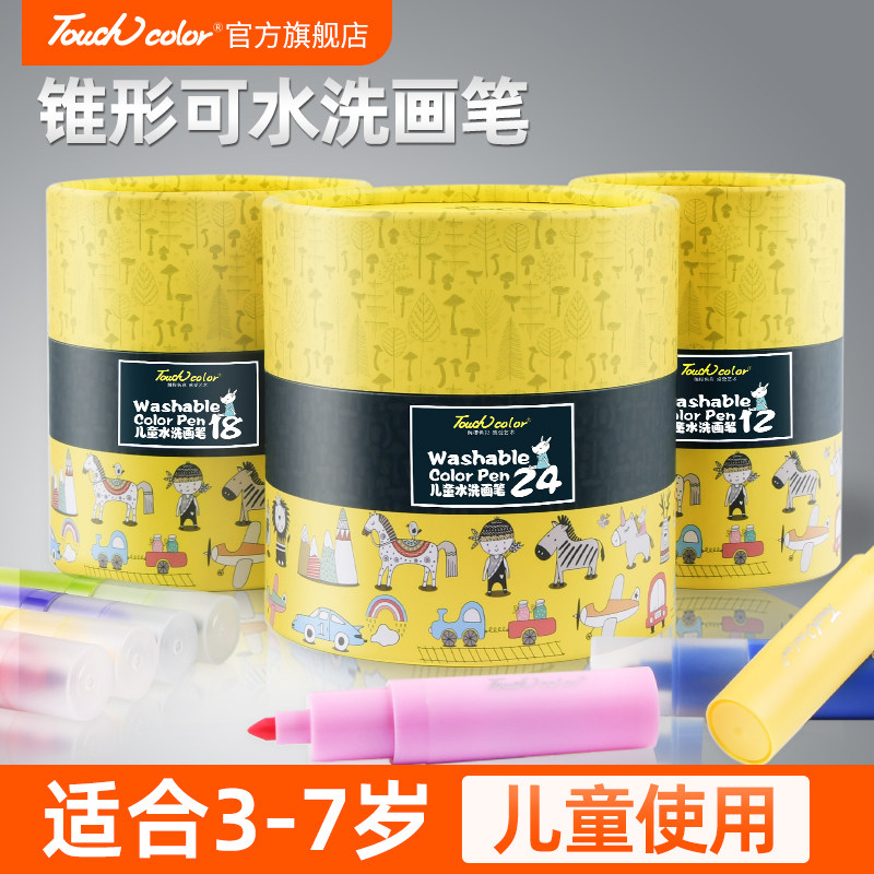 touchcolor儿童水洗画笔水溶性水彩笔套装幼儿园宝宝画画涂鸦可水洗无毒画笔12/24色小学生彩色笔美术绘画笔