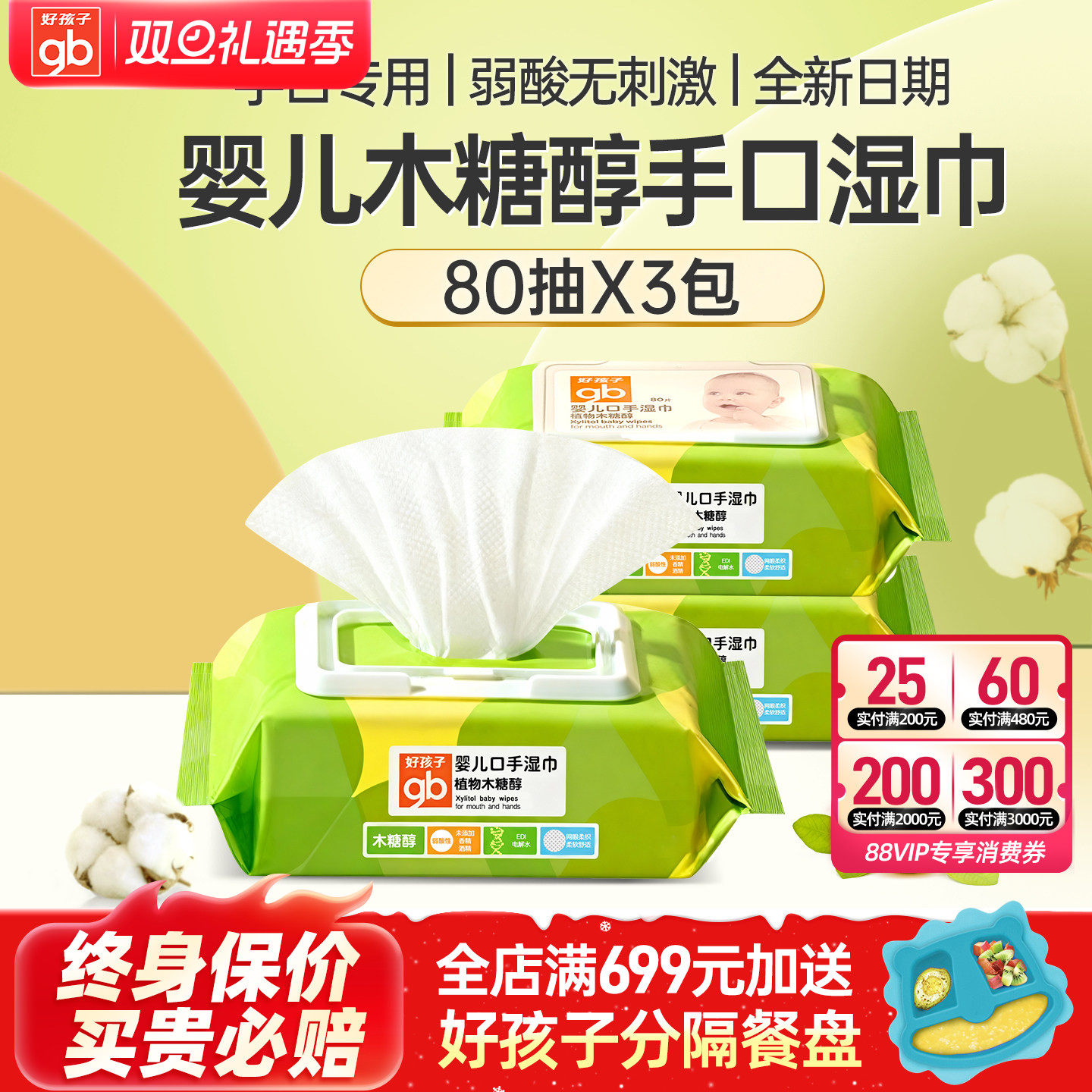 gb好孩子婴儿湿巾新生儿宝宝手口屁屁专用木糖醇湿纸巾80抽12包