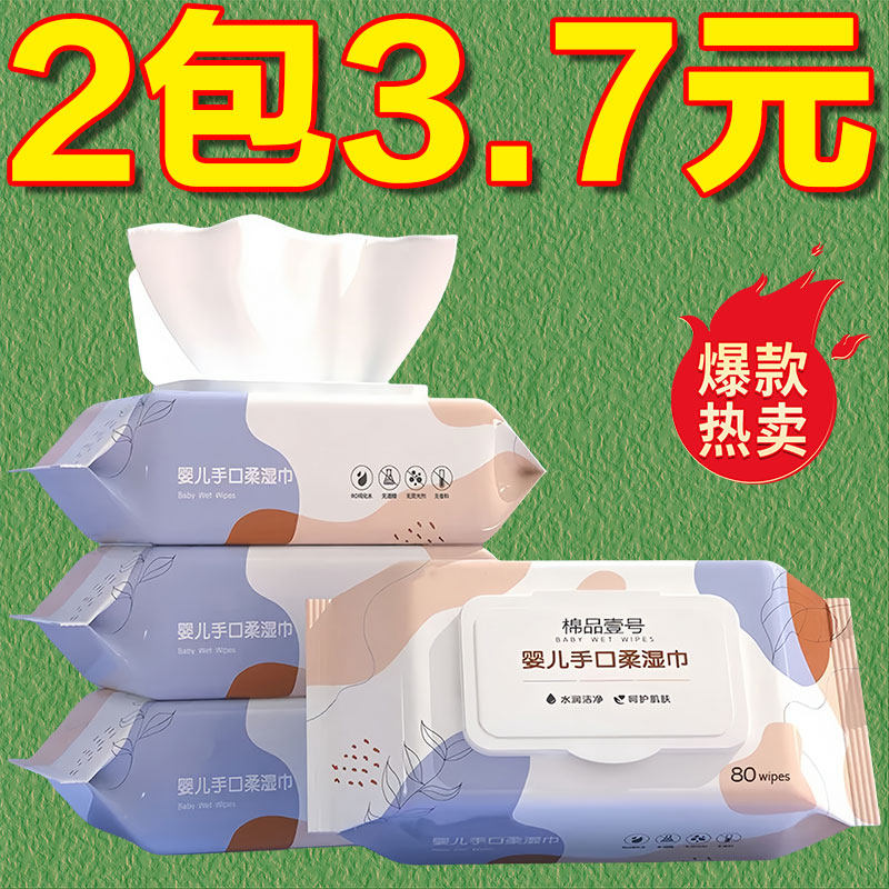 婴儿湿巾新生儿宝宝手口专用湿纸巾家庭用80抽特价大包家庭实惠装