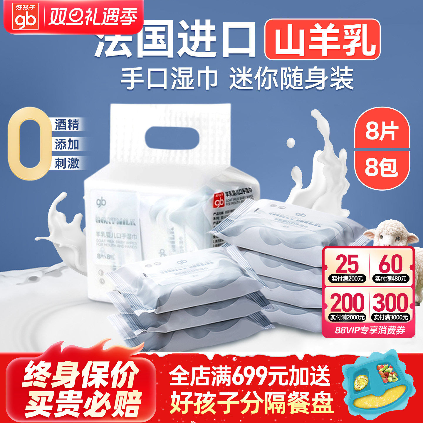 好孩子婴儿湿巾新生儿宝宝专用手口湿巾山羊奶柔软湿纸巾随身8包