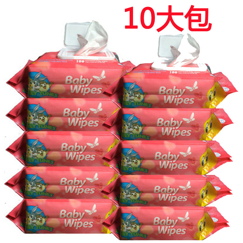 婴儿湿巾新生儿童宝宝湿纸巾100手口专用屁屁湿巾10大包带盖单抽