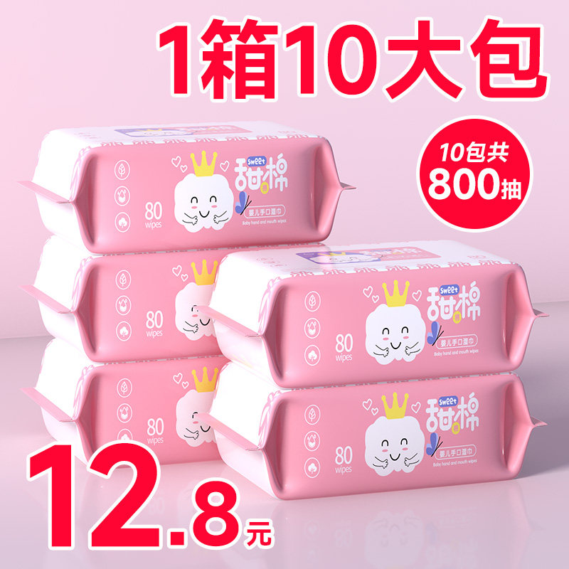 沐阳婧麒婴儿湿巾新生儿手口专用湿纸巾宝宝儿童80抽10大包家庭装