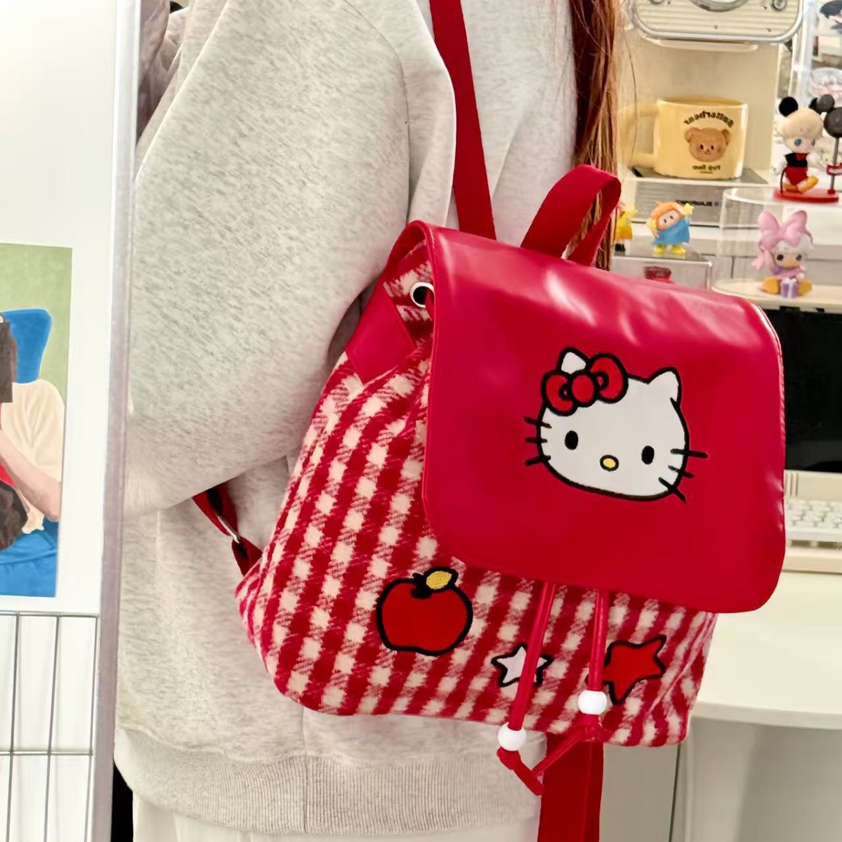 ins新款可爱卡通红格子kt双肩包洋气少女jk背包百搭小众个性书包