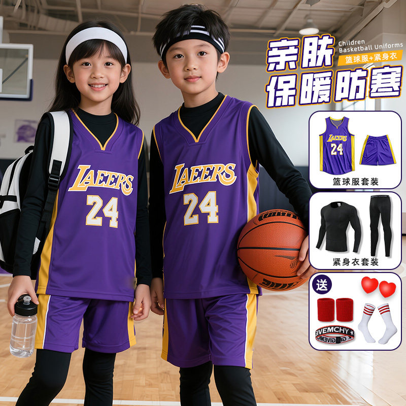儿童篮球服套装秋冬四件套训练服男童女童库里詹姆斯科比球衣24号