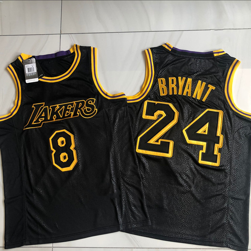 全刺绣 湖人队科比球衣前8后24曼巴精神黑色蛇纹纪念版AU篮球服