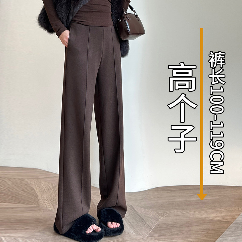 棕咖色阔腿裤女冬加绒加厚加长超高个子羊毛呢直筒今年流行梧桐裤