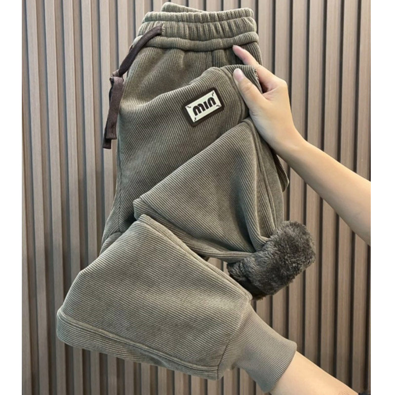 橘子树在哪儿韩系加绒休闲裤女冬季简约垂感裤子显瘦抽绳百搭卫裤