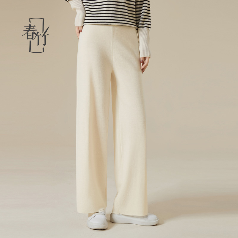【直播专享】春竹100%纯羊毛阔腿裤女冬季新款高腰针织直筒裤