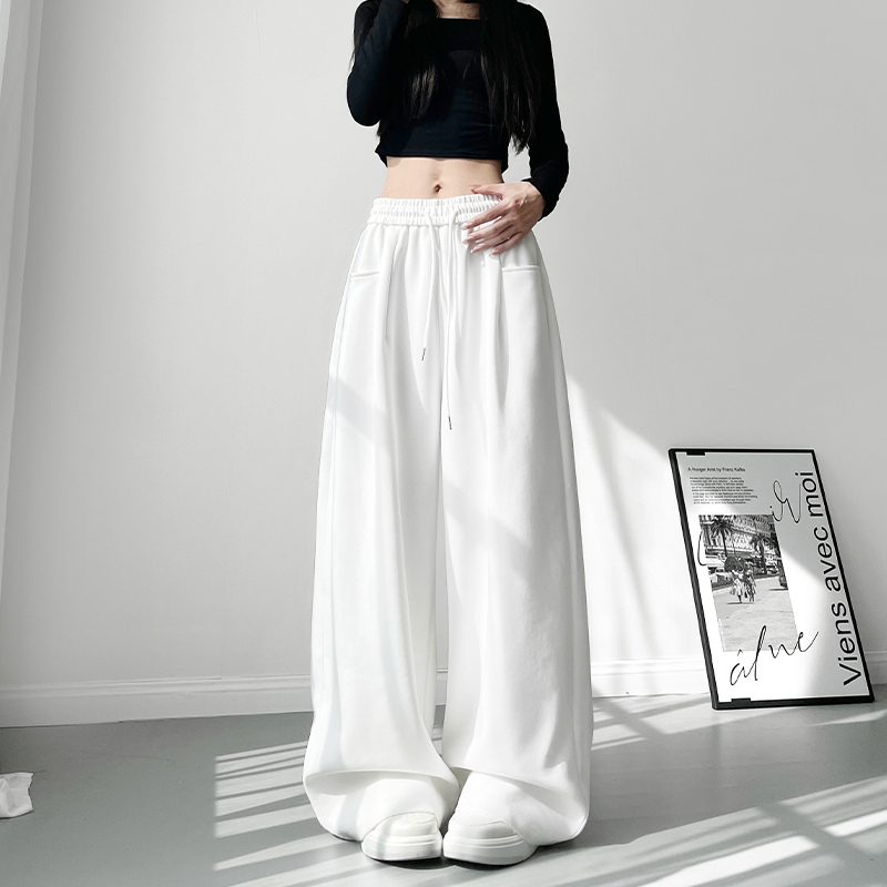 大码白色慵懒风软糯运动阔腿裤女冬季微胖女孩显瘦遮肉加绒直筒裤
