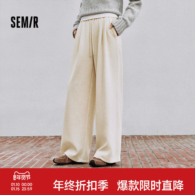 森马休闲裤女冬季宽松白色裤子仿呢阔腿裤垂感2025新款慵懒糯米裤