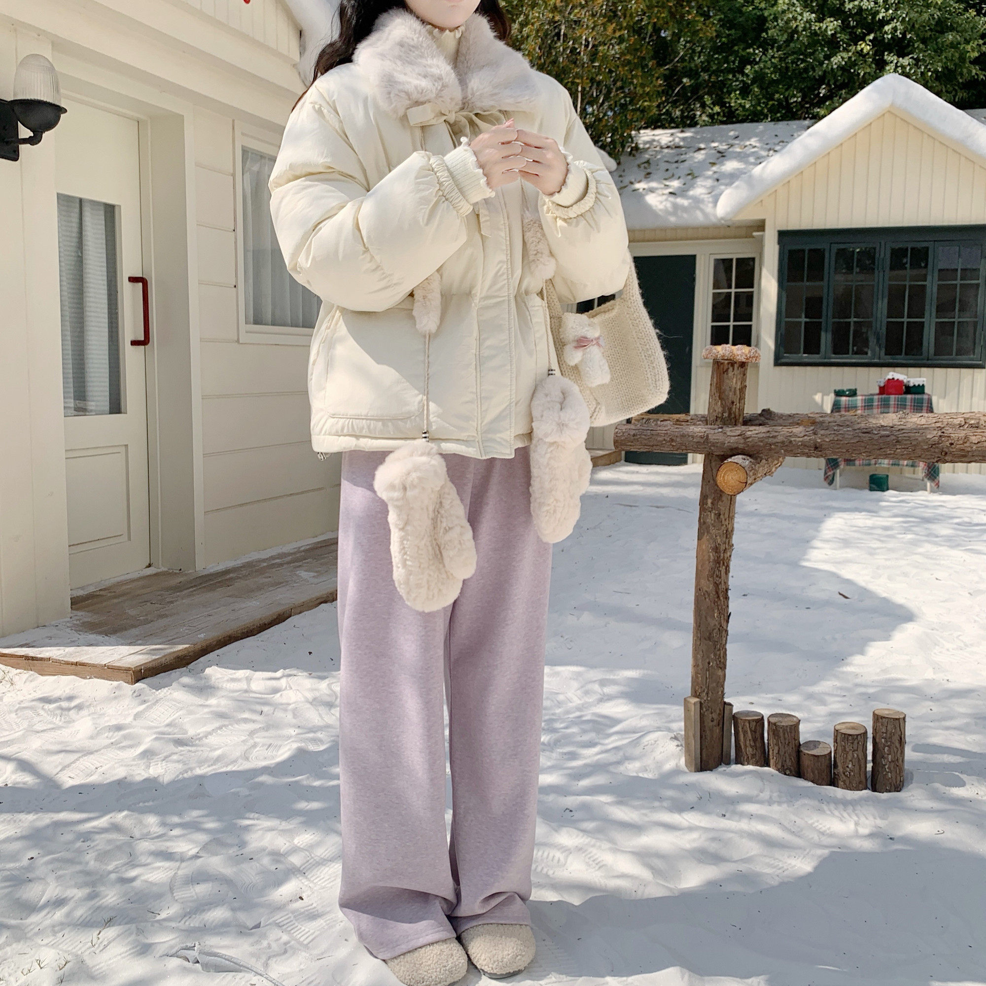 superniniyy 俏皮小羊羔&氛围感羊羔毛松紧腰抽绳阔腿裤短裤女冬