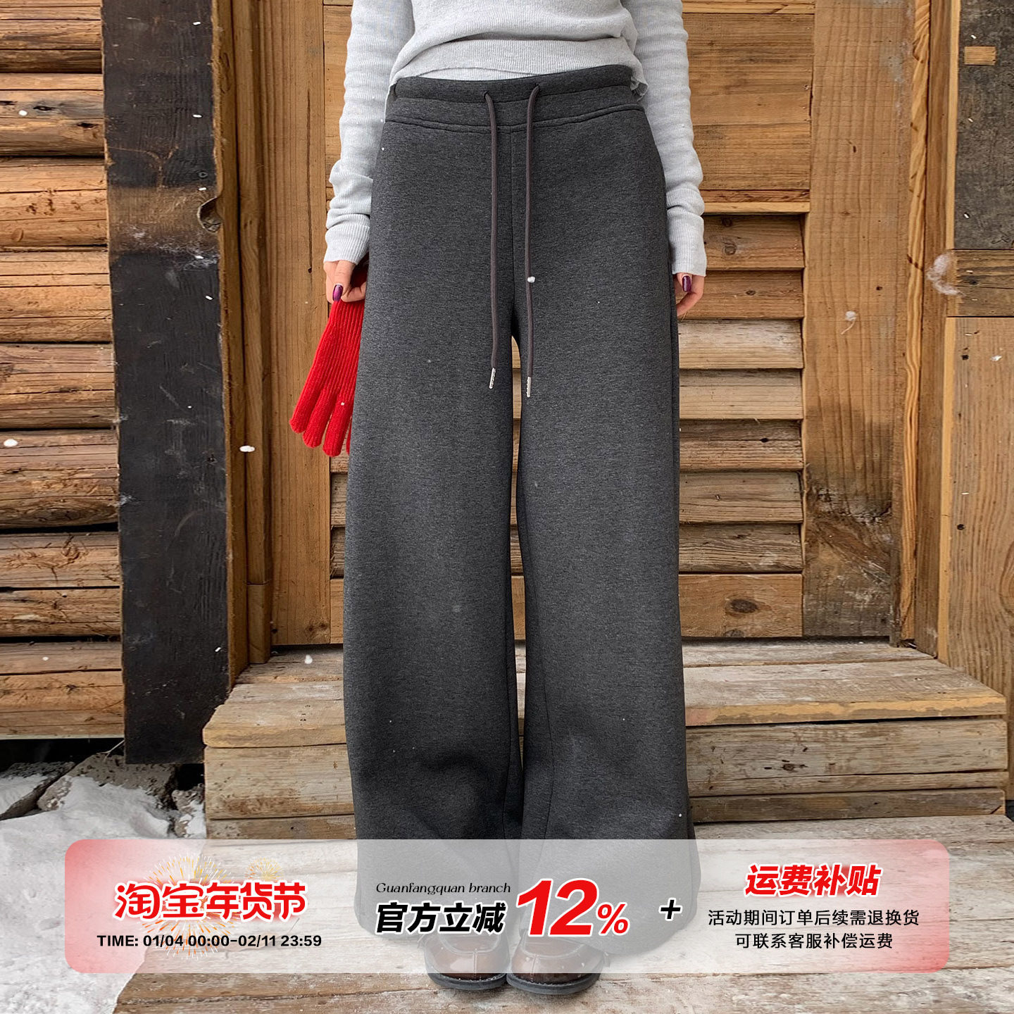 【Dear YN】温暖软糯多色加绒加厚抽绳垂感百搭阔腿裤拖地裤女冬