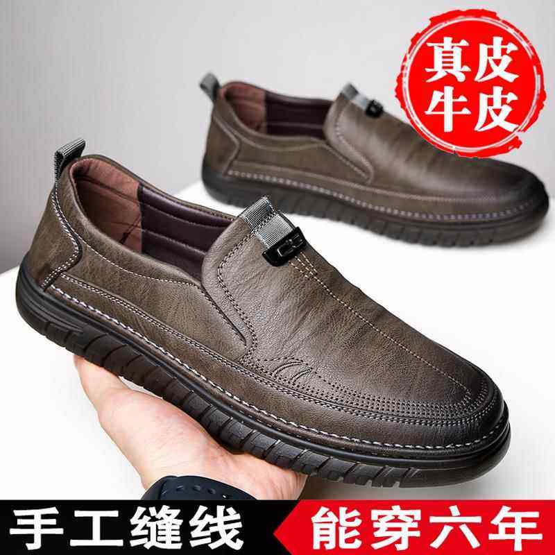 春新款真皮休闲正装皮鞋透气商务男英伦头层牛皮一脚蹬豆豆鞋软底